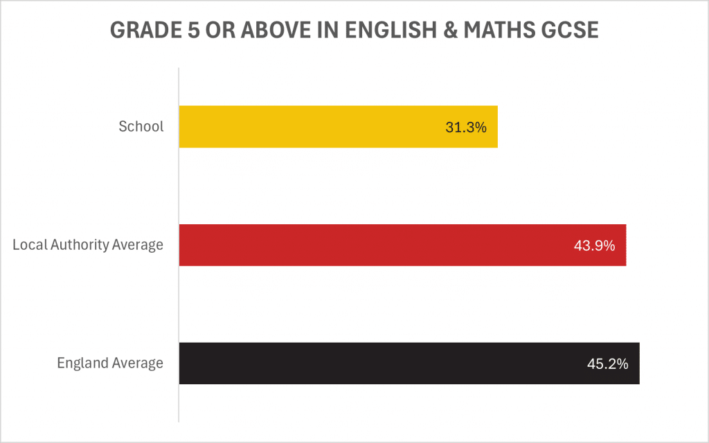 This tells you the percentage of pupils who achieved grade 5 or above in English and maths GCSEs.