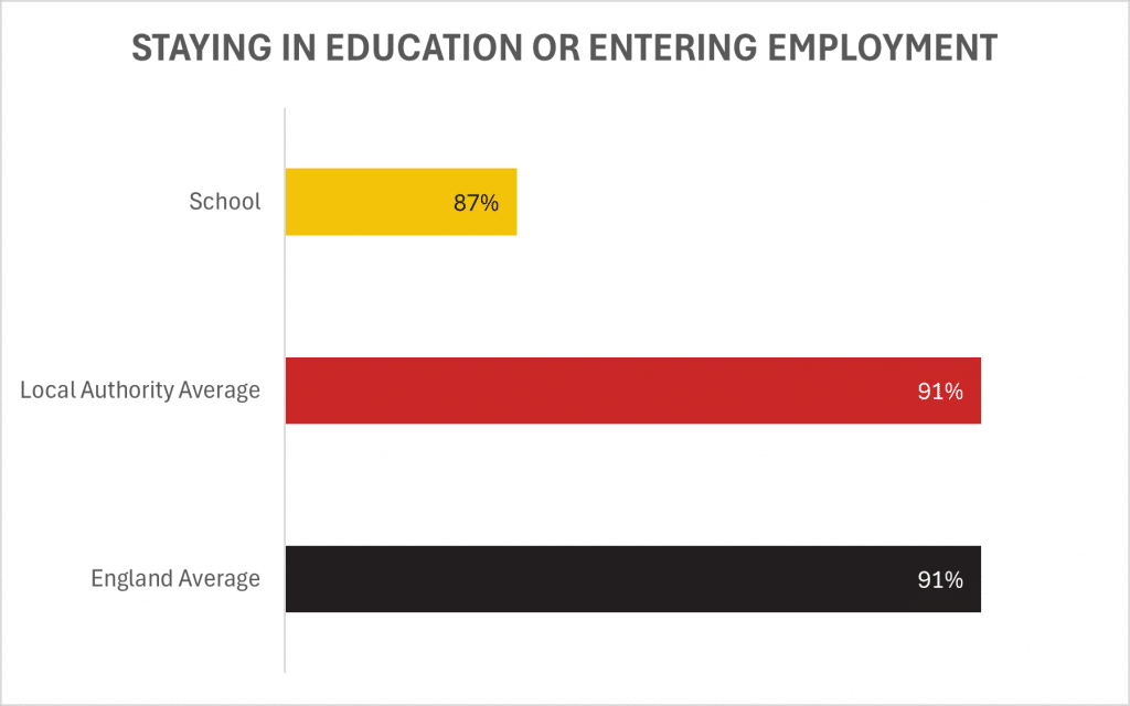 This shows the number of pupils who either stayed in education or went into employment after finishing key stage 4 (after year 11, usually aged 16).
